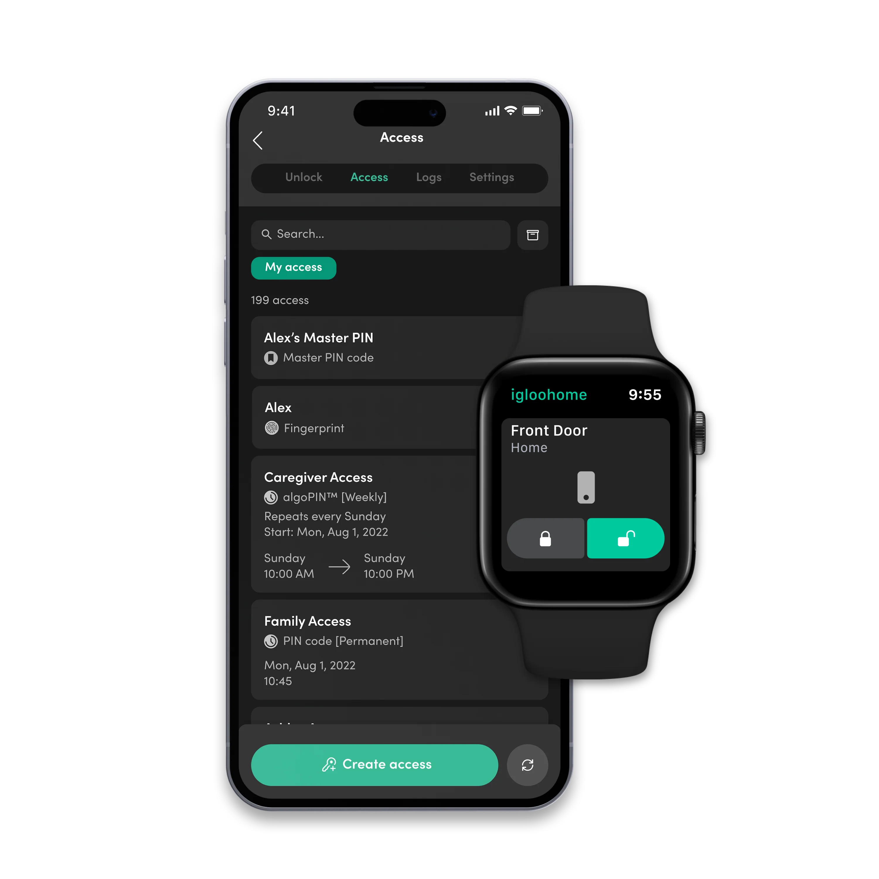 Διαισθητική εφαρμογή για κινητά: Διαχειριστείτε απρόσκοπτα τα προνόμια πρόσβασης μέσω της δωρεάν εφαρμογής igloohome. Προσθέστε και αφαιρέστε εύκολα έως και 10 δακτυλικά αποτυπώματα, δημιουργήστε και μοιραστείτε απεριόριστη πρόσβαση Bluetooth, παρακολουθήστε τα αρχεία καταγραφής δραστηριοτήτων και επαληθεύστε ταυτότητες με βιομετρικά στοιχεία. Απολαύστε την ευκολία της πρόσβασης με φορητές συσκευές μέσω του Apple Watch, των συντομεύσεων Siri, της φωνής και των χειρονομιών.