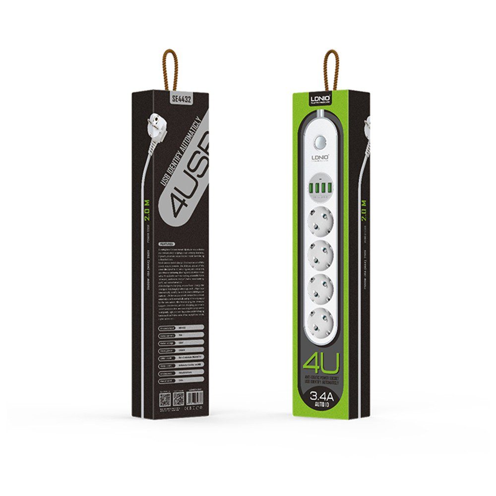 Πολύπριζο LDNIO Με 4 Πρίζες Ρεύματος και 4 Θύρες USB