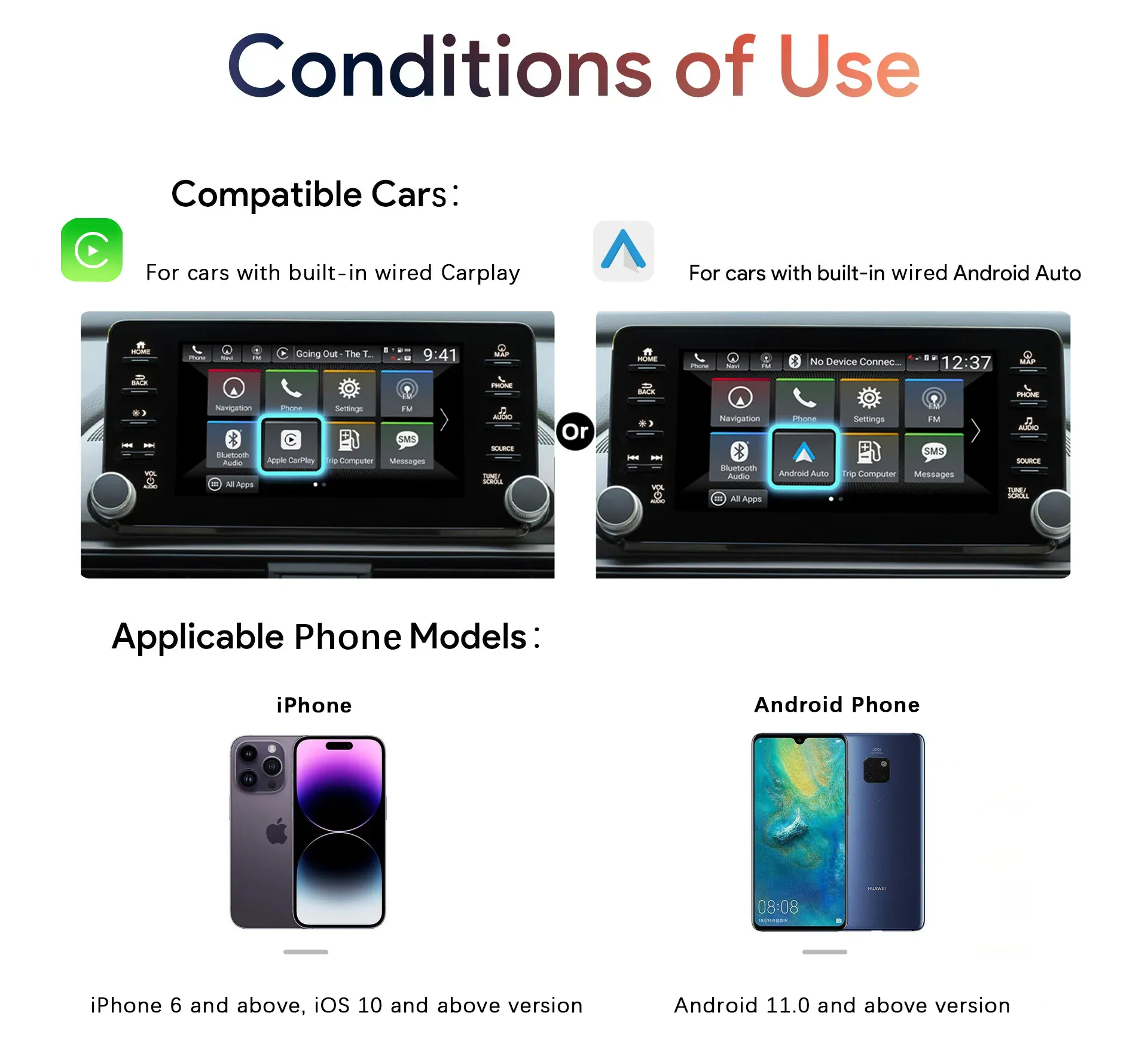 Το Carlinkit 2AIR επιδεικνύει ευρεία συμβατότητα. Θα λειτουργήσει καλά με iPhone 6 ή νεότερη έκδοση, συσκευές με iOS 10 ή νεότερη έκδοση, καθώς και με Android 11.0 και μεταγενέστερη έκδοση. Ως αποτέλεσμα, τίποτα δεν θα σας περιορίζει πια!