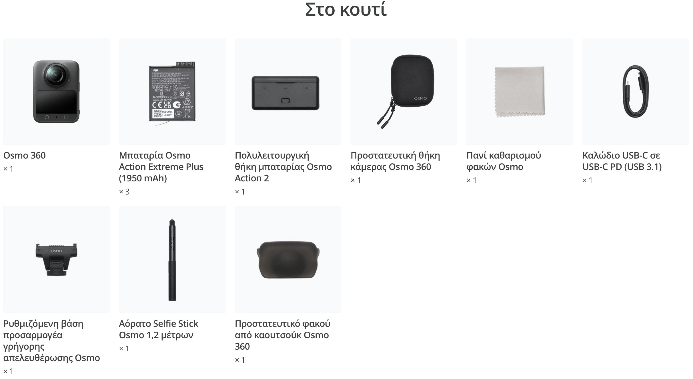7. Το Osmo 360 Standard Combo δεν περιλαμβάνει ένα αόρατο selfie stick, το οποίο μπορεί να αγοραστεί ξεχωριστά.