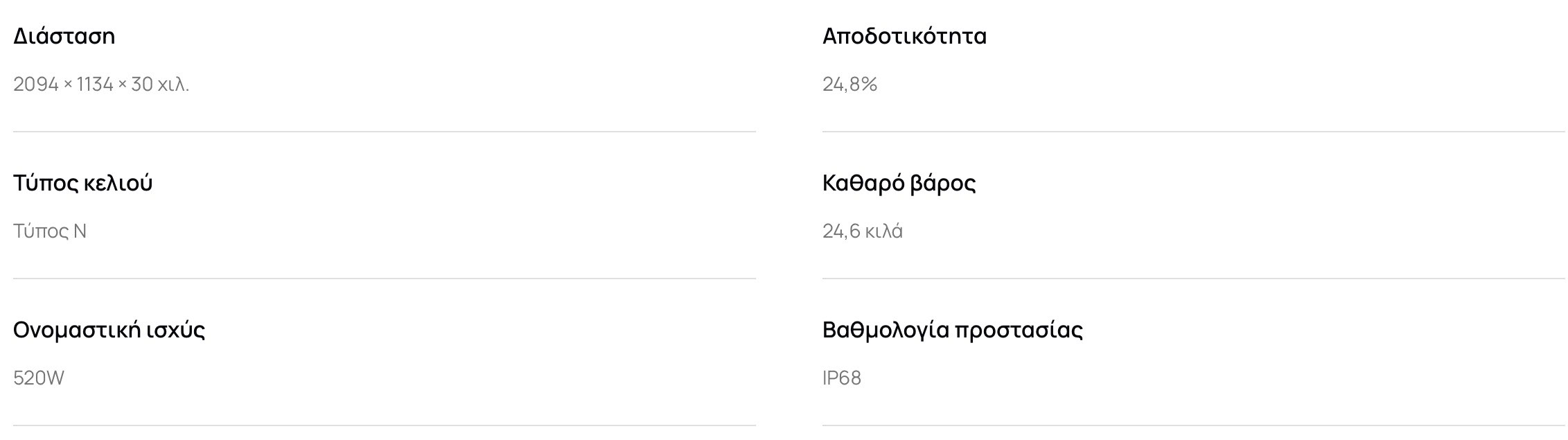 • Ισχύς 520W με απόδοση άνω του 24,8%