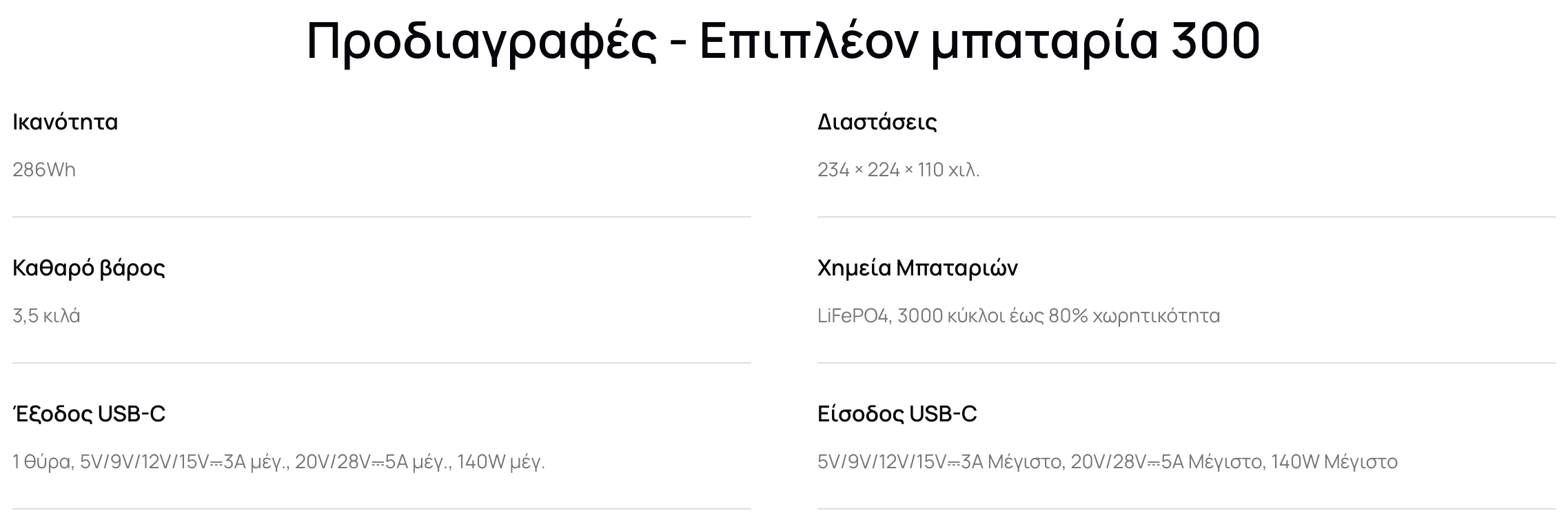 Με βάρος μόλις 3,5 κιλά, το EB300 είναι ελαφρύ και συμπαγές με μια επιπλέον θύρα εισόδου και εξόδου USB-C, ιδανικό για εν κινήσει ή σύντομες εξορμήσεις σε εξωτερικούς χώρους.