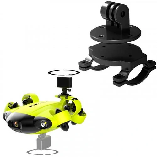 Με το GoPro Mounting μπορείτε να χρησιμοποιήσετε την action κάμερά σας πάνω στο υποβρύχιο drone για επιπλέον λήψεις. Η βάση μπορεί να πειρστραφεί 360 μοίρες (χειροκίνητα) πριν την τοποθέτηση της κάμερας.
