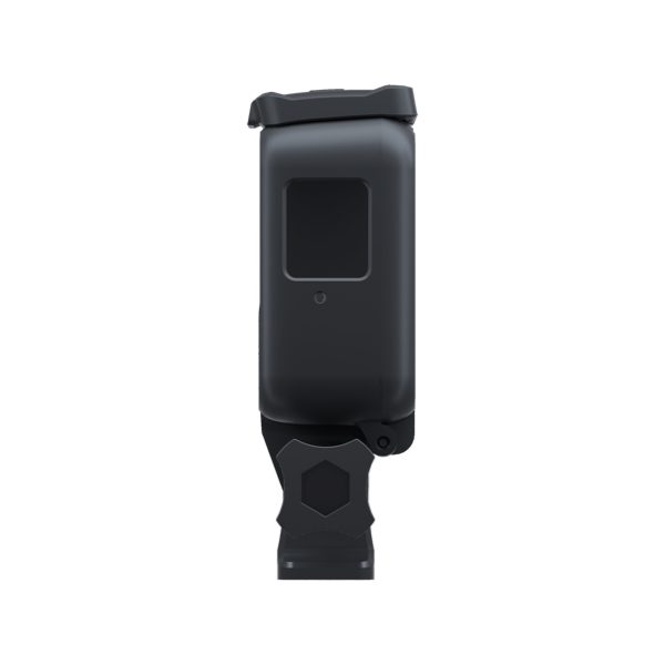 The Insta360 One R standard Mounting Bracket securely holds the camera in a sturdy plastics frame. A lense protection used with the Insta360 One R may be reattached to the Mounting Bracket once the camera is inserted. The Mounting Bracket is designed for use with the Invisible Selfie Stick.
