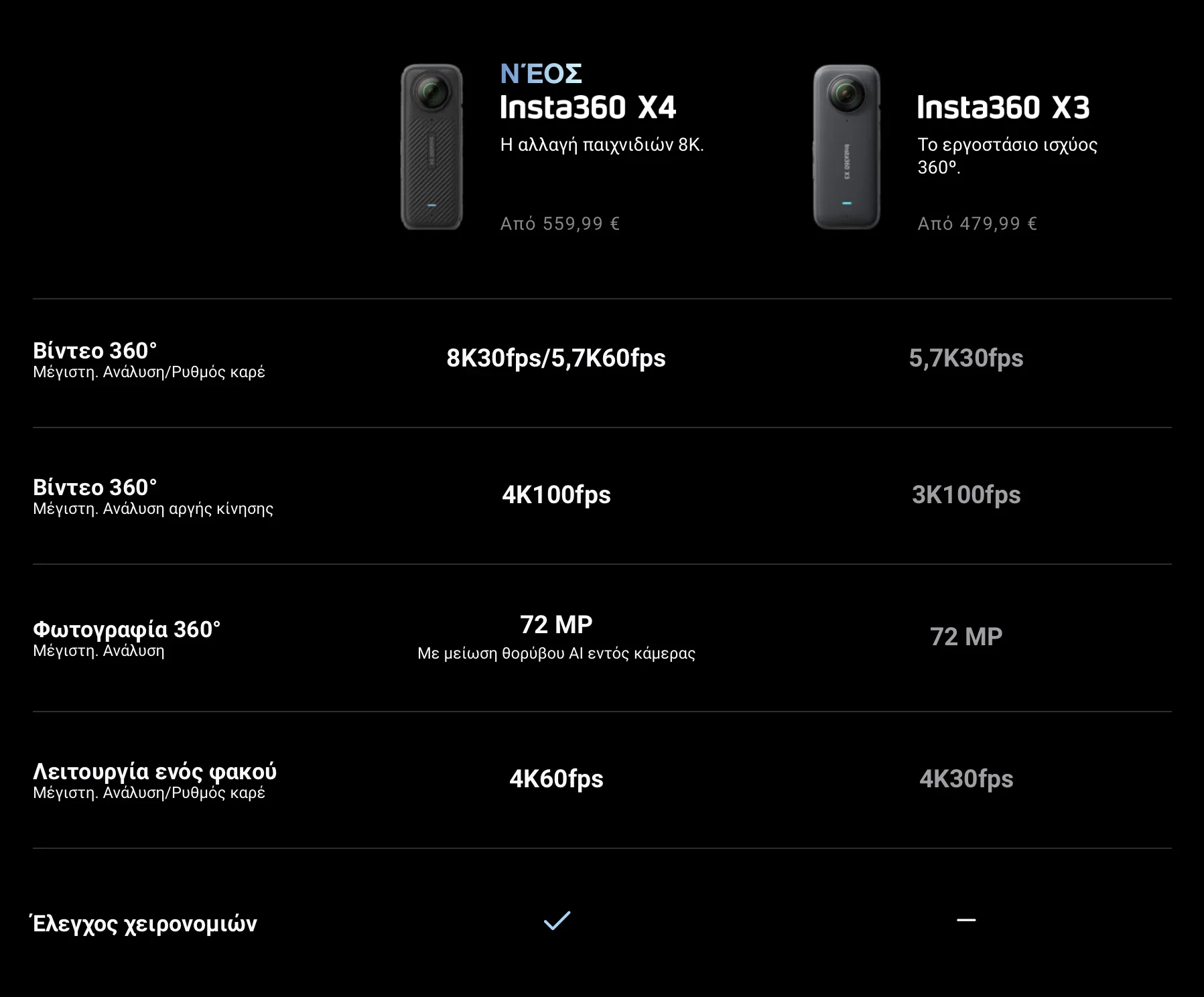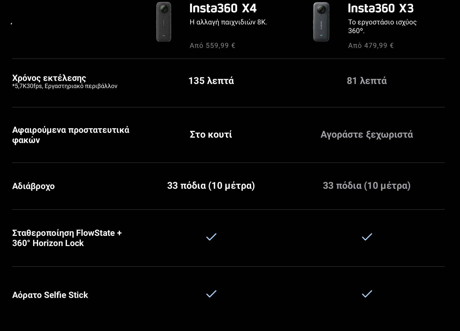 Το X4 αύξησε τη χωρητικότητα της μπαταρίας του στα 2290 mAh! Αυτό σας δίνει 135 λεπτά χρόνο εγγραφής στα 5,7K30fps, 67% περισσότερο από το X3! Δύναμη μέσα από τη δράση όπως ποτέ άλλοτε.
