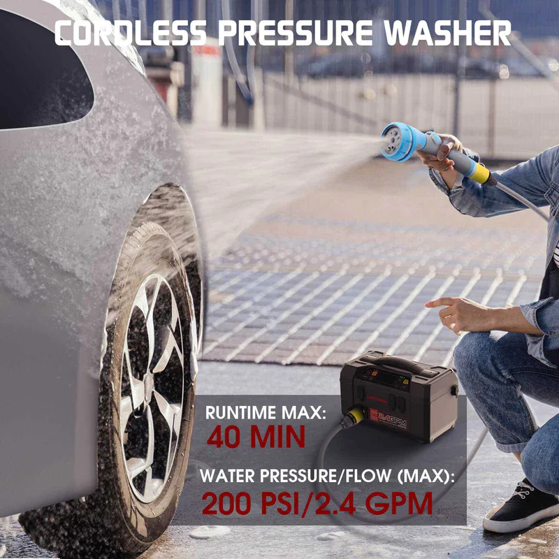 - Το φορητό πλυντήριο αυτοκινήτων AW401 έχει πίεση έως και 200 PSI, ιδανικό για γρήγορο καθαρισμό σε χώρους κατασκήνωσης, καμπίνες, αυτοκίνητα, παραλίες και σκάφη ή οπουδήποτε ο ηλεκτρισμός είναι υψηλός, ενσωματωμένο Toss (σύστημα ολικής διακοπής), απενεργοποιεί αυτόματα την αντλία όταν η σκανδάλη δεν είναι ενεργοποιημένη για εξοικονόμηση ενέργειας και παράταση της διάρκειας ζωής της αντλίας. Φορητό power bank 20000mAh, διάρκεια μπαταρίας έως 40 λεπτά.